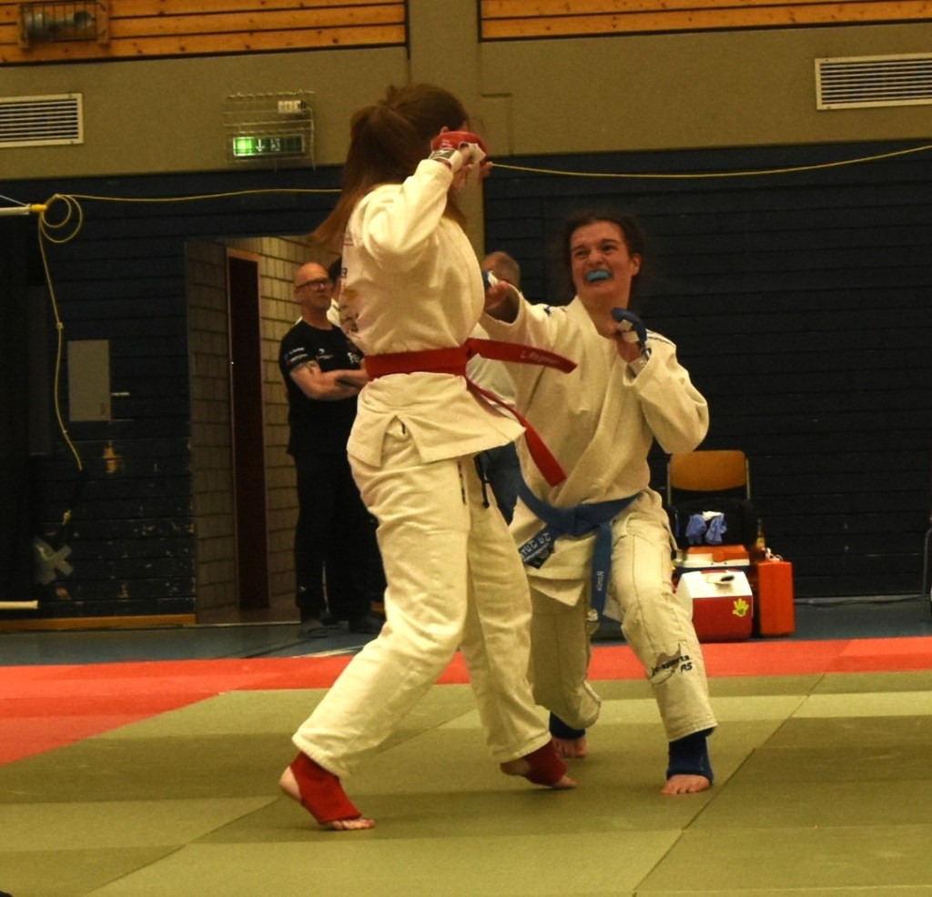 Anschließend trat Pia Marie Fortmüller auf die Matte. Ihren ersten Kampf gewann sie souverän mit einem Full Ippon gegen eine starke Gegnerin. Im zweiten Duell traf sie auf die amtierende Europameisterin, der sie sich trotz großem Einsatz geschlagen geben musste. Damit gewann sie die zweite Silbermedaille für Herzogenaurach.